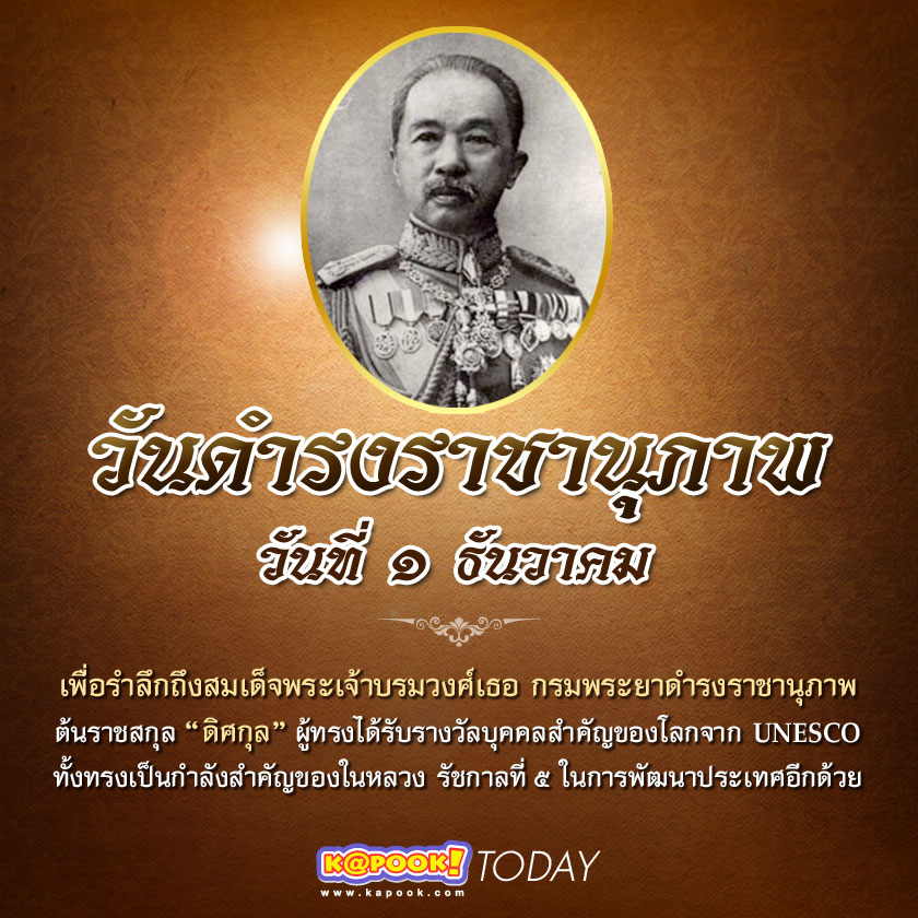 คนไทยหลายคนรู้จักพระนามของสมเด็จพระเจ้าบรมวงศ์เธอ กรมพระยาดำรงราชานุภาพ แต่อาจยังไม่ทราบว่าพระองค์มีคุณูปการต่อประเทศไทยมากมายเพียงใด กระทั่งได้รับการยกย่องจากองค์การศึกษาวิทยาศาสตร์และวัฒนธรรมแห่งสหประชาชาติ (UNESCO) ให้เป็นบุคคลสำคัญของโลก เมื่อปี พ.ศ. 2505 ซึ่งนับเป็นบุคคลไทยพระองค์แรก และทรงได้รับการถวายพระนามเป็น “พระบิดาแห่งประวัติศาสตร์ไทย” โดยกำหนดให้วันที่ 1 ธันวาคม ของทุกปี เป็น “วันดำรงราชานุภาพ” วันนี้กระปุกดอทคอม ขอเล่าให้ได้รับทราบกัน