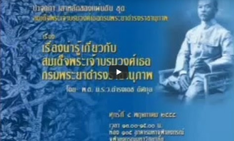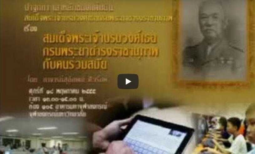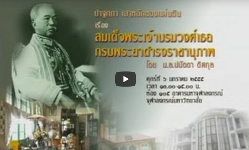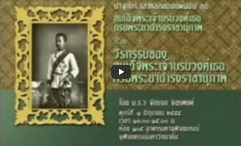 เรื่องน่ารู้เกี่ยวกับสมเด็จฯ กรมพระยาดำรงราชานุภาพ วิทยากร พันตรี ม.ร.ว.ดำรงเดช ดิศกุล คุณอร่าม สวัสดิวิชัย วันศุกร์ที่ 4 พฤษภาคม 2555 ณ ห้อง 105 อาคารมหาจุฬาลงกรณ์ จุฬาลงกรณ์มหาวิทยาลัย